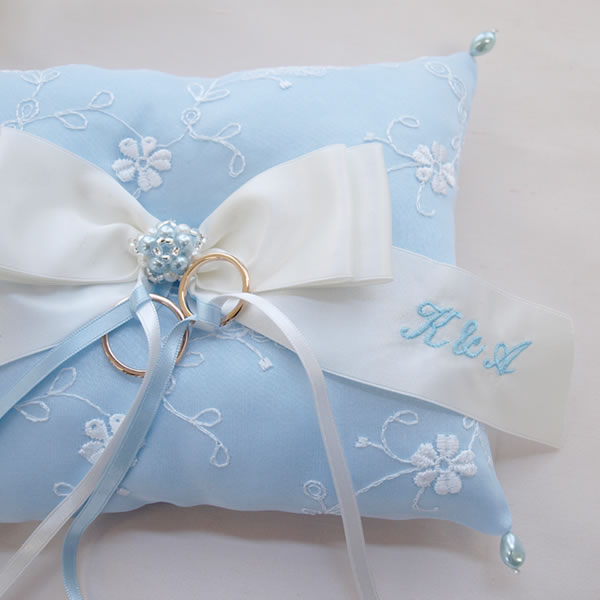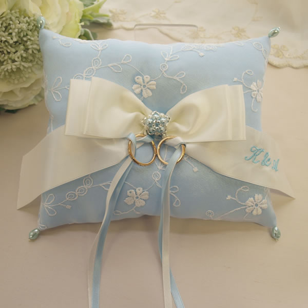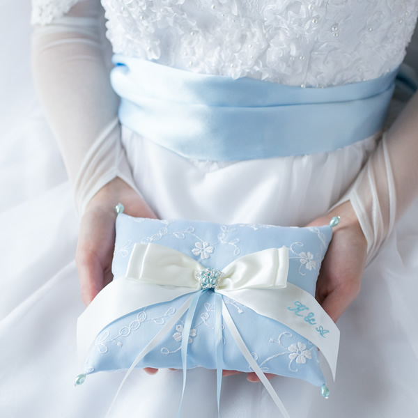 ※こちらのリングピローの刺しゅうはお二人のイニシャルのみです。記念日の刺しゅうは承っておりません。