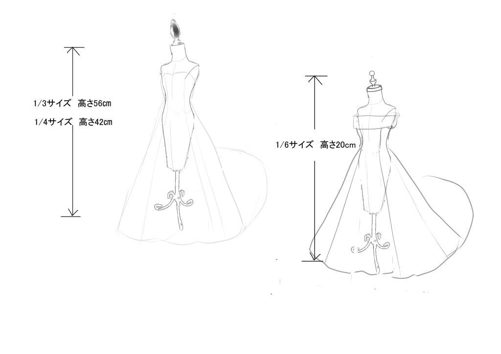 まりんぼコラム当店でお作りするミニドレスは実物の1/3サイズと1/4サイズ、1/6サイズの3種類です。