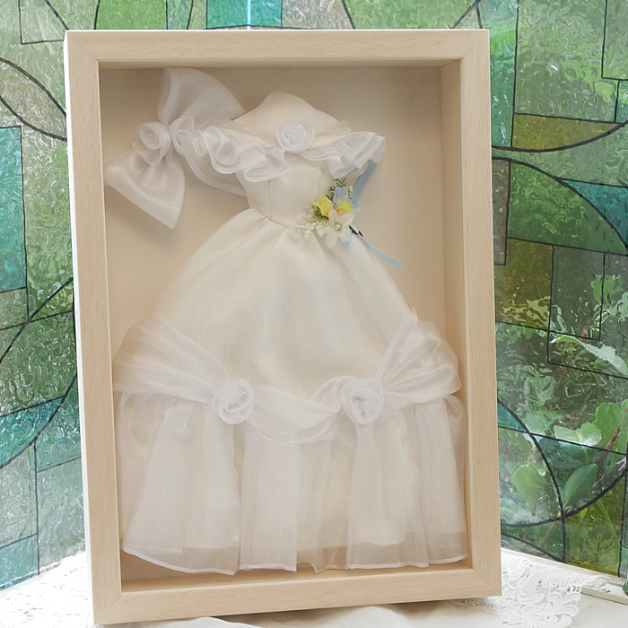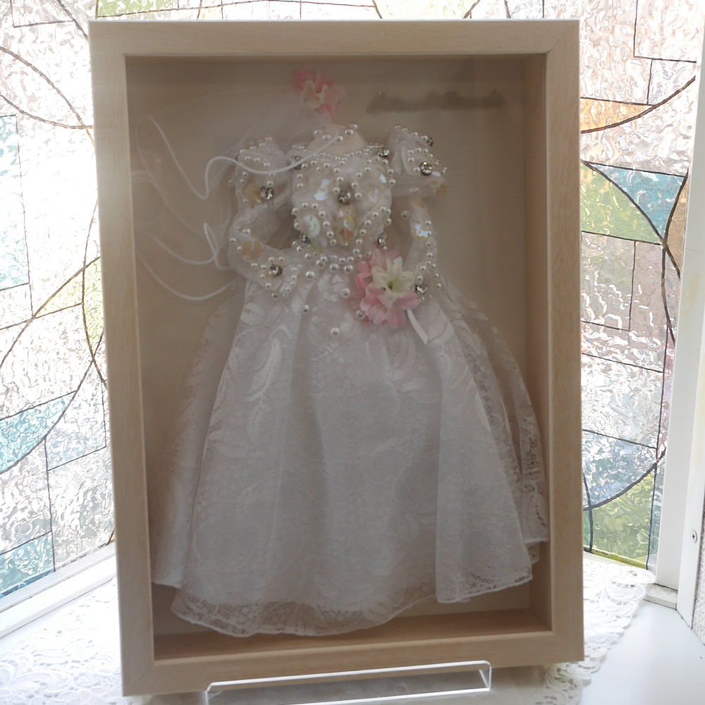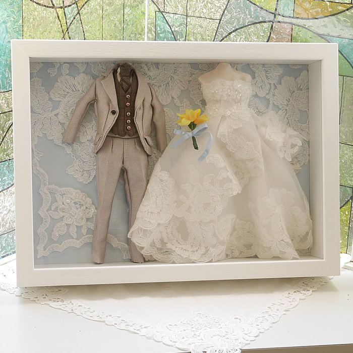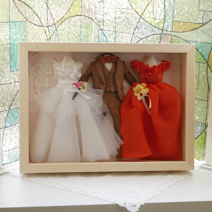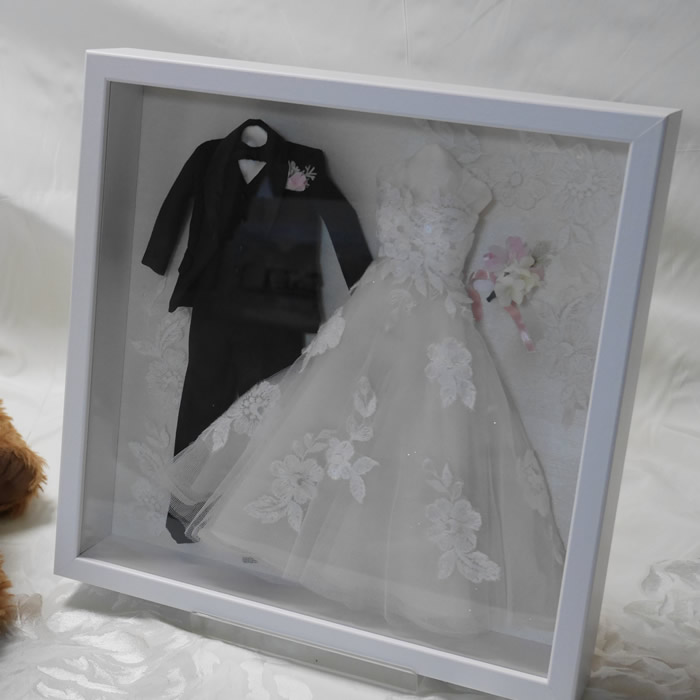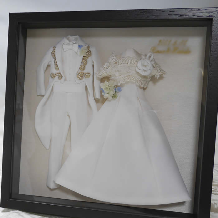 ウェディングドレスやタキシードが小さくなっていつでも目の届くところに置いておける。とても素敵な事だと思います。