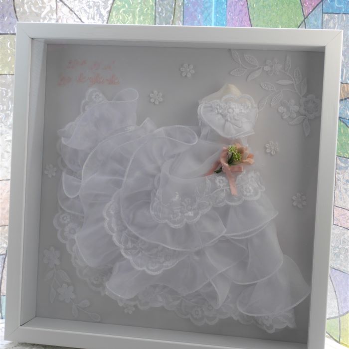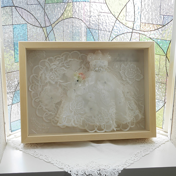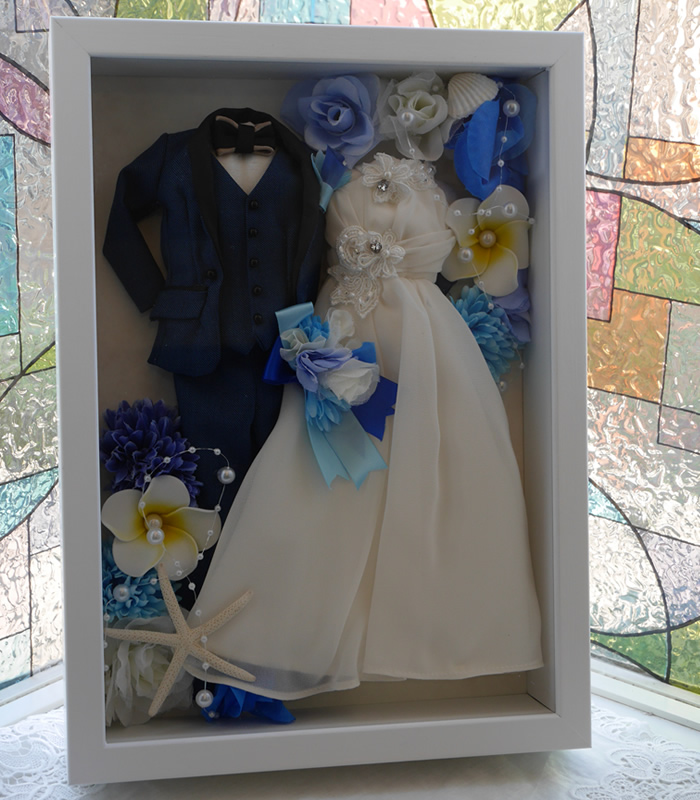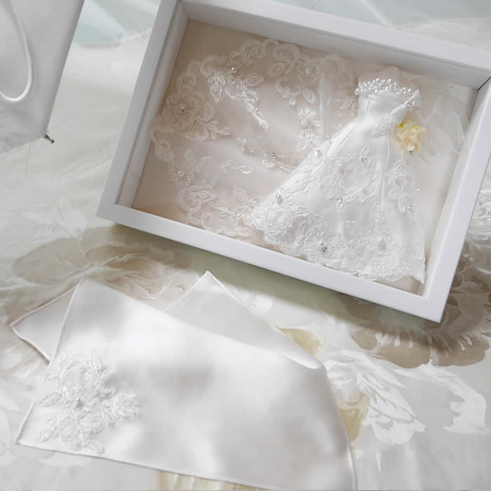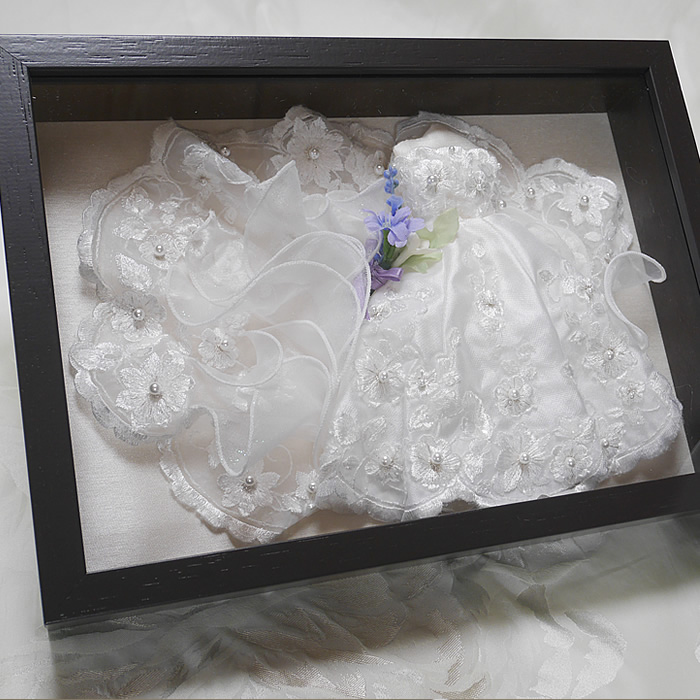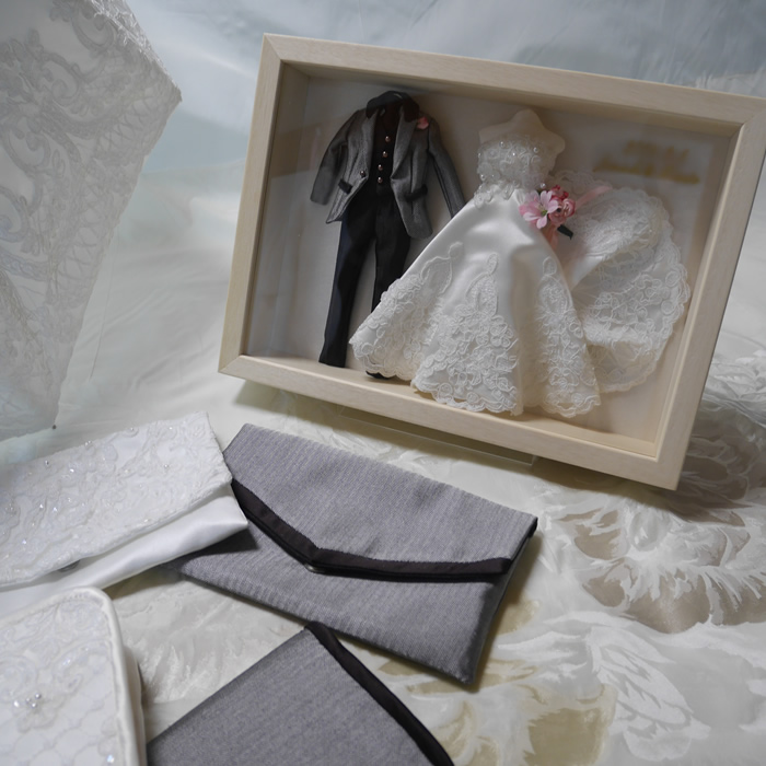 ウェディングドレスやタキシードが小さくなっていつでも目の届くところに置いておける。とても素敵な事だと思います。