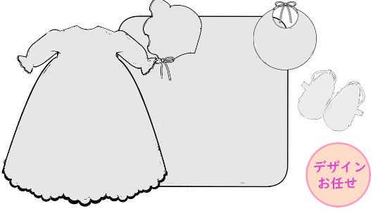 ベビードレス38,000円ベビー帽子5,000円オーバースカート10,000円