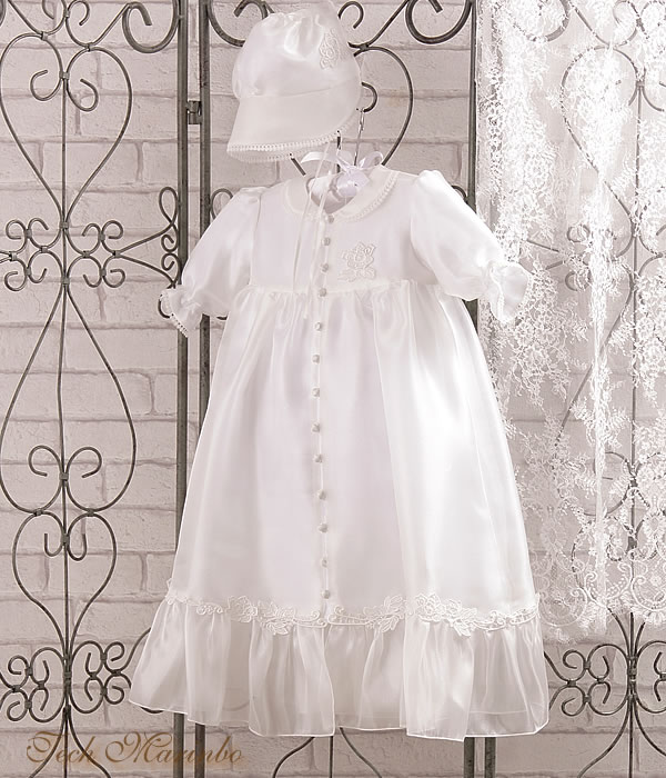 シンプルなデザインながらもフラットカラーやフリル、レースなど愛らしい要素がつまったベビードレス。