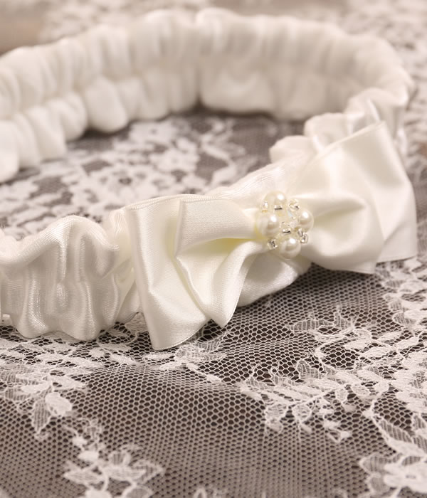 かわいいリボンにビジューをあしらった上品なデザイン。
