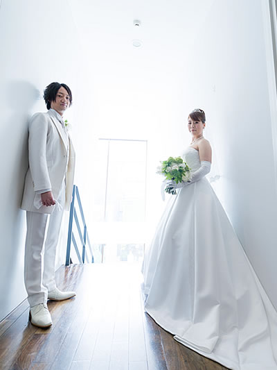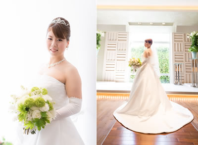 挙式のドレスと披露宴のドレスをまったく違うデザインのドレスに見せるために