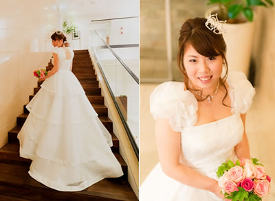 挙式のドレスはシンプルに、披露宴のドレスはかわいいデザインでお願いしました。