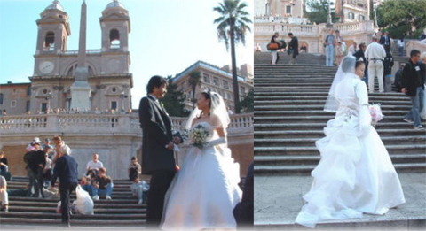 イタリアの大聖堂での挙式で、お袖の有るものの着用が必要なため、上から羽織る共生地のボレロも オーダー頂きました。