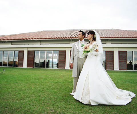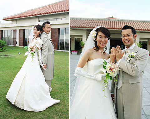 挙式をした沖縄は 11 月といえど 29 度の真夏日でしたが、ウェディングドレスは軽くて体にフィットしているため長時間着ていても着崩れることなく、疲れずに動き回ることができました。