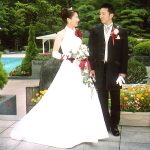 そして当日は、晩秋のトロントは普通、大変寒く、日本の12月上旬の気候なのですが、不思議な ことに、雲ひとつない晴天に恵まれ、朝、ドレスを身に着けた瞬間に、ドレスが体にピッタリと沿うだけでなく、ドレスの着心地がとってもすばらしく、「今日一日、すばらしい日になる!」 と語ってくれるかのように、気分も上昇、一瞬にして幸せな気持ちに浸ることができました。そして朝の9時から夜8時まで、11時間も、ウェディング・ドレスを着通しました!