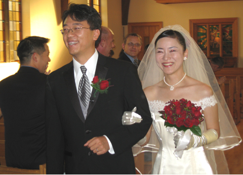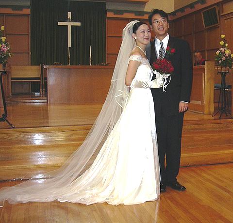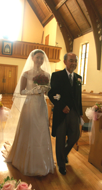 13時から教会にて挙式、バージンロードを歩くときに裾が静かに流れて、本当に「美しいドレス!」 と我ながら、自分のドレス姿に自信を持つこともできました(笑)。 そして参列した皆様からは「こんなキレイなドレスは見たことない、どこで買ったの?」と聞かれ、 「日本で、デザイナーの皆さんと一緒に考え、オーダーメードしてきた」というと、「さすがだねぇ」 と感嘆の声を漏らしていました。母も非常に喜んでくれて、本当に、すばらしい美しいドレスを作っていただき、心から感謝いたしております。