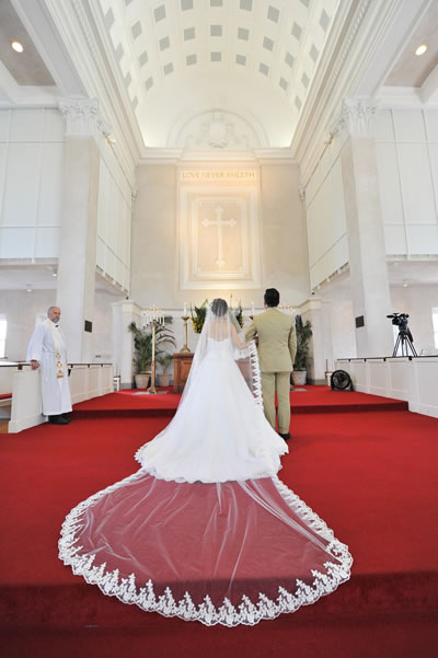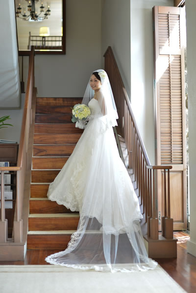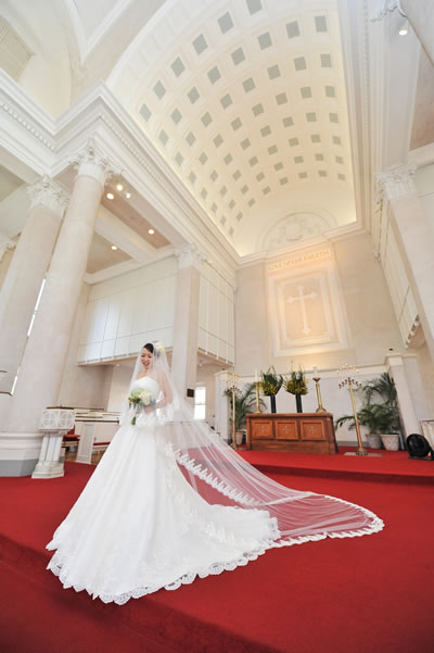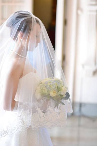 ベールはドレスにも大聖堂にもとってもぴったりで、参列してくれた友人たちにも大好評でした!