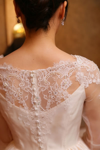 でも母がてくまりんぼさんを探してくれて、オーダーなんて贅沢かと思いつつお話を聞きに行ったら、自分好みのドレスサンプルがたくさんあり、一生に一度のドレスなら、ここで作りたい!と思ってオーダーしました。