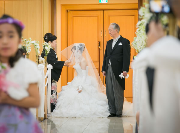 式後に、友人から「あのマリアベールは華やかな中にも神聖さがあって、