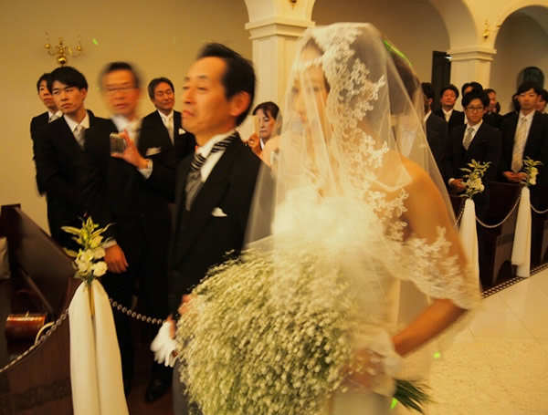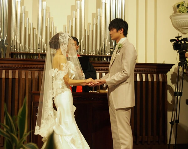 式場の、スタッフさんも牧師さんも初めてベールダウン加工のマリアベールをみたということで、すごく興味をもってもらいました。