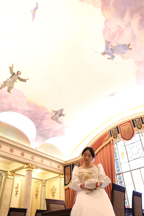 そこで今回、当店の教室でご自身の手で思い描いたウエディングドレスをお作りになり、出来上がったドレスで撮影会をされました。