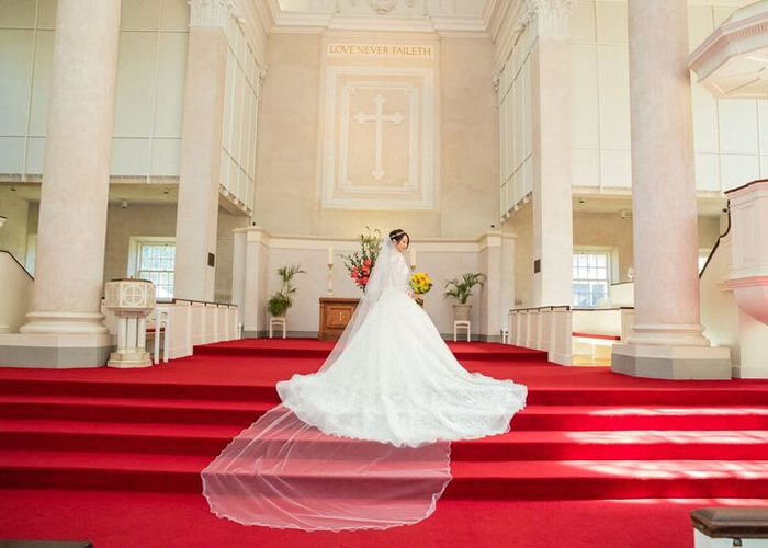 長いロングベールが、とっても、セントラルユニオン教会に合っていて、原口さんに、お願いをして良かったなと思います。
