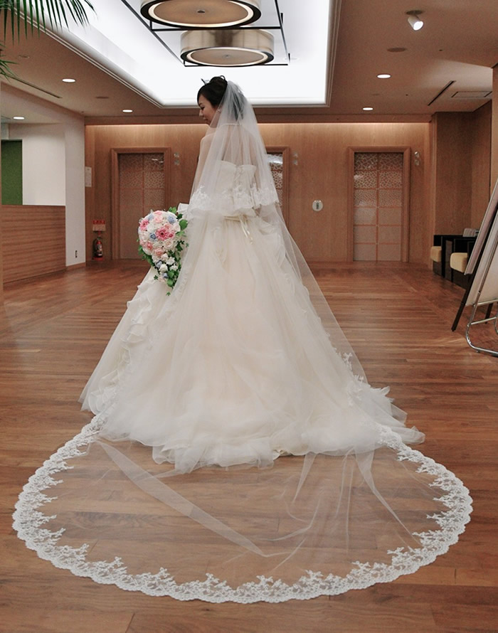 愛情込めて作ったロングベール、母親である私の手で娘のベールダウン…最高に幸せな瞬間でした!
