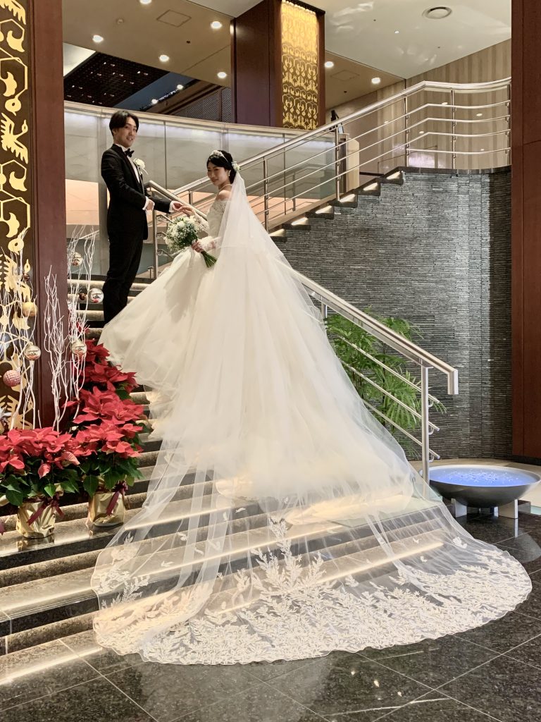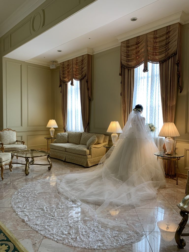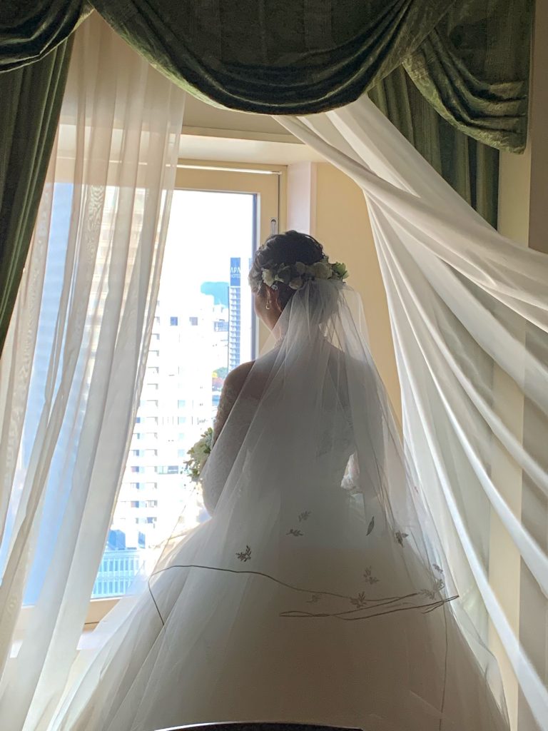 先日、前撮りが終わりましたのでベールの着画送ります。