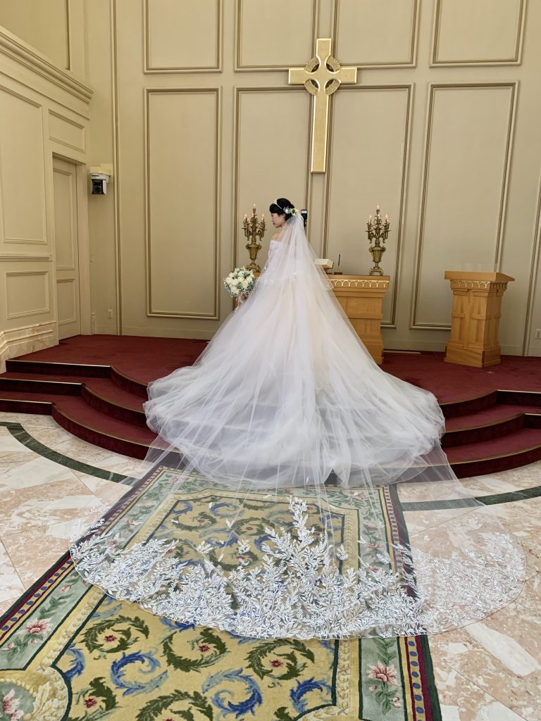 先日、前撮りが終わりましたのでベールの着画送ります。