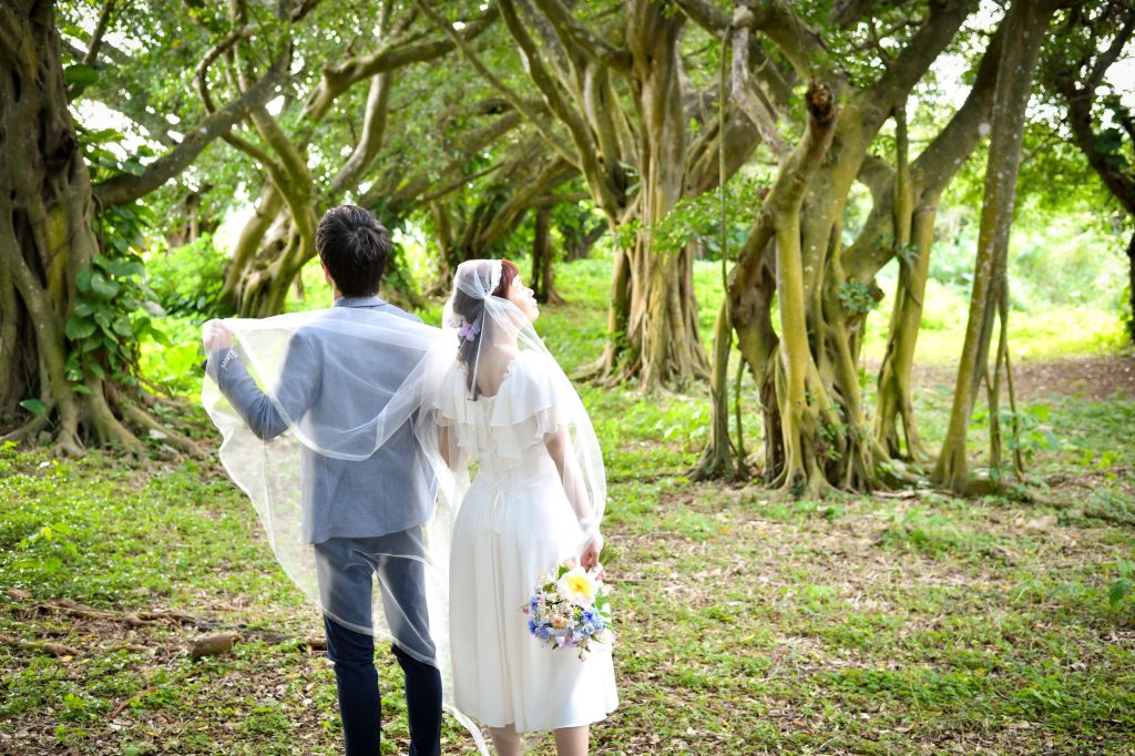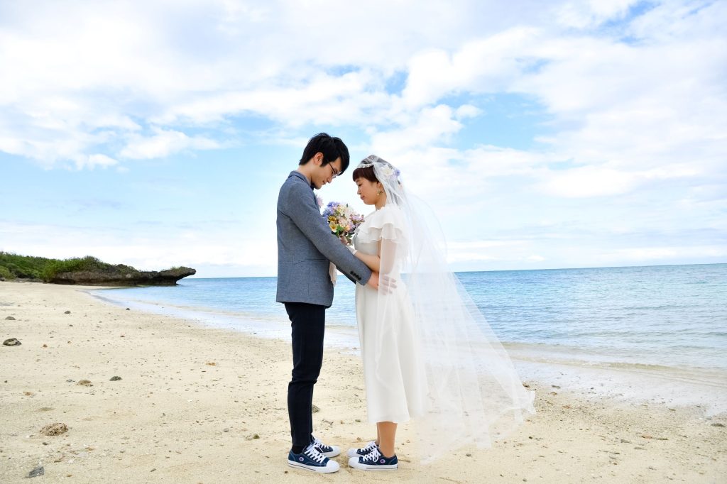 1月に新婚旅行で沖縄に行きまして、石垣島でウェディングフォトを撮ったのですが、その際にアレンジしたものを着用しました。
