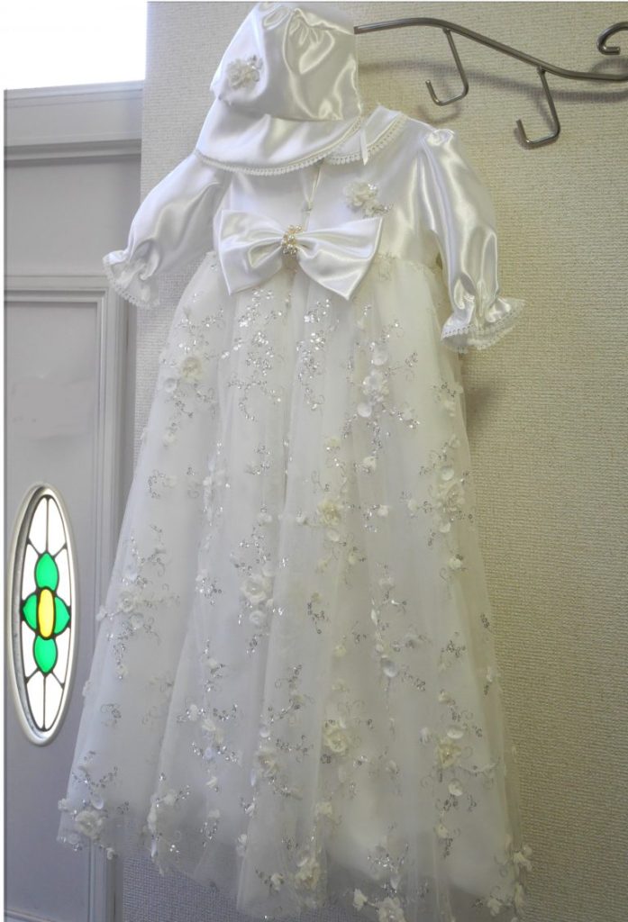 ご自身のウェディングドレスとお母様のウェディングドレス、2着を組み合わせてベビードレスに作り替えて欲しいと言うご依頼でした。