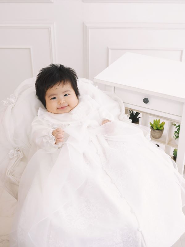 ふわふわの真っ白なドレスを着てご機嫌でした