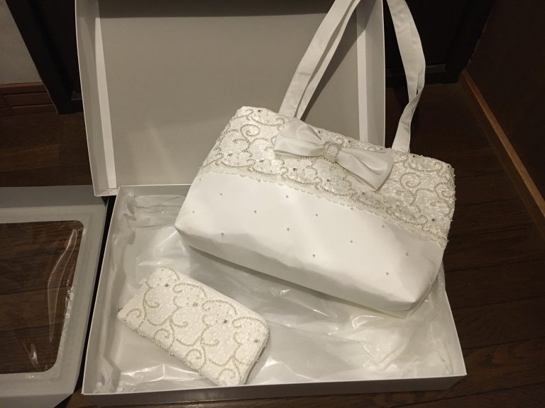 出来上がってきたサブバッグと財布は私のドレスそのものでした!