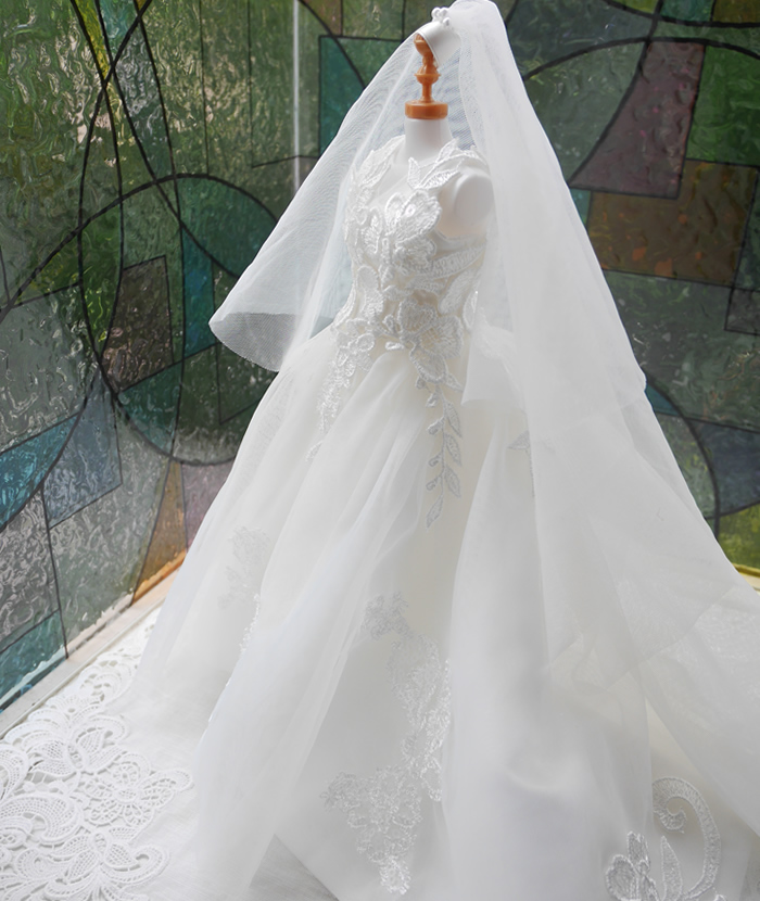 今回のミニチュアドレスはベールからのリメイクで、ドレスのお写真を拝見しながらお作りしました。
