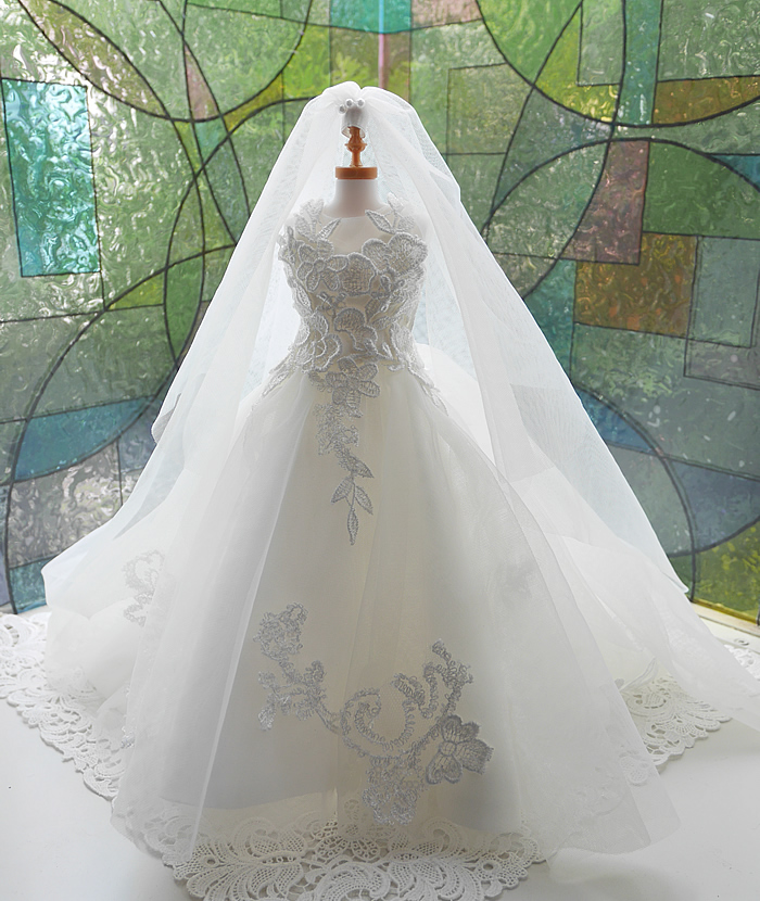 今回のミニチュアドレスはベールからのリメイクで、ドレスのお写真を拝見しながらお作りしました。