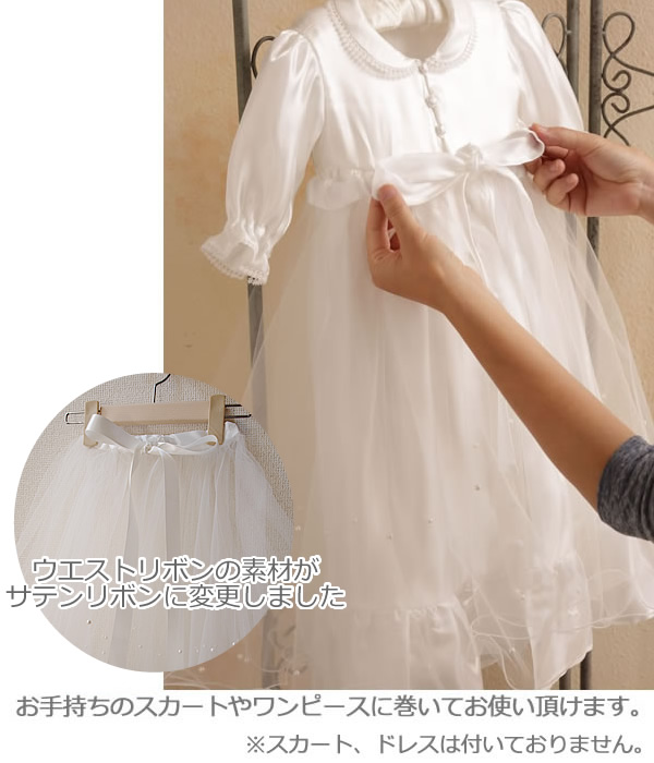 お手持ちのスカートやワンピースの上に巻いてリボンベルトできゅっと結びます。