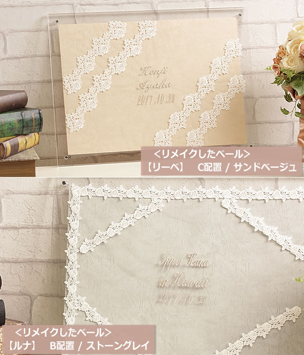 花嫁様のウェディングベールを素敵なメモリアルボードにリメイクします。