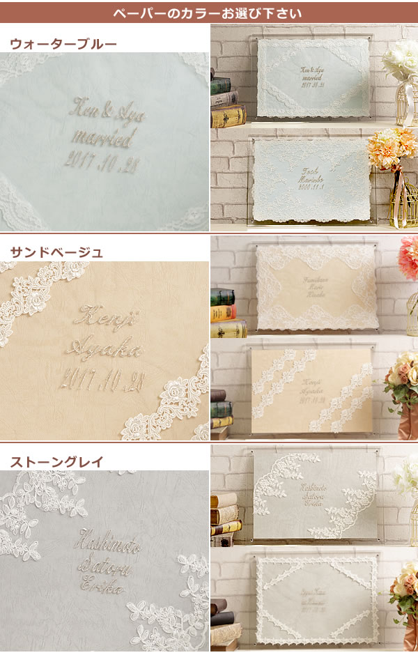 ペーパー:ウォーターブルー サンドベージュ ストーングレイ 刺しゅう:シルバー