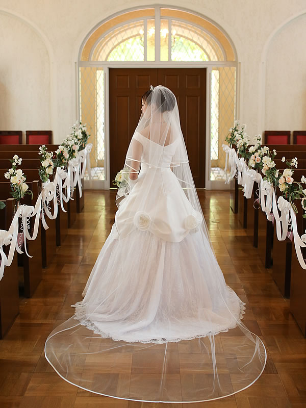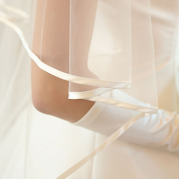 ベール周囲をサテンテープでパイピングし流れるようなラインが際立ちます。