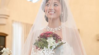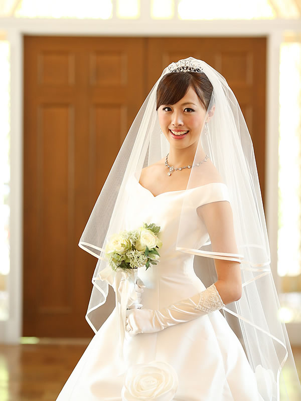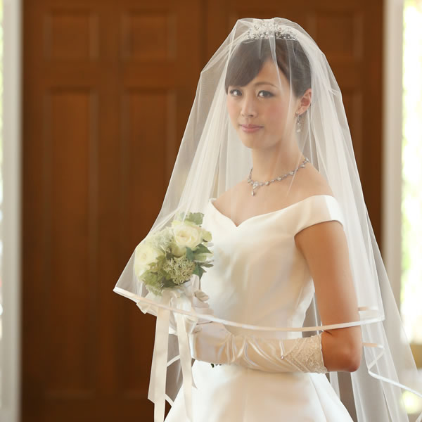 ノーブルな正統派フェイスアップベールは凛としたドレス姿を演出してくれます。