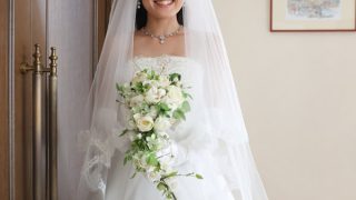 美しく編み込まれた模様のブレードをベール周囲にほどこしました。