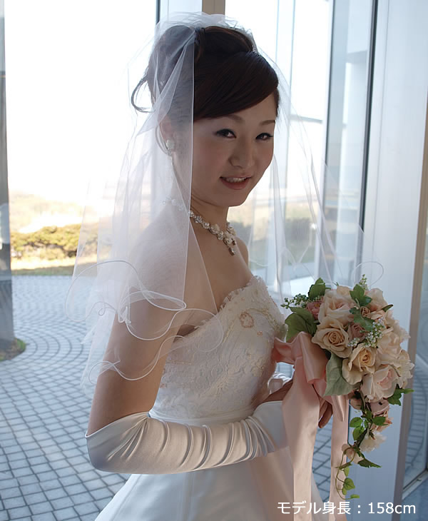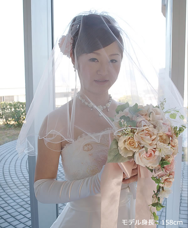 チュール素材全体に上品なシルバーラメを施したベールは、花嫁様の動きによってキラキラと光り、とてもエレガントに演出します。