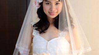 ふわふわと軽やかな動きのあるベールの端に大粒のパールをほどこすことで、ベール端のラインがはっきりとした華やかなベールです。