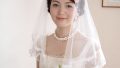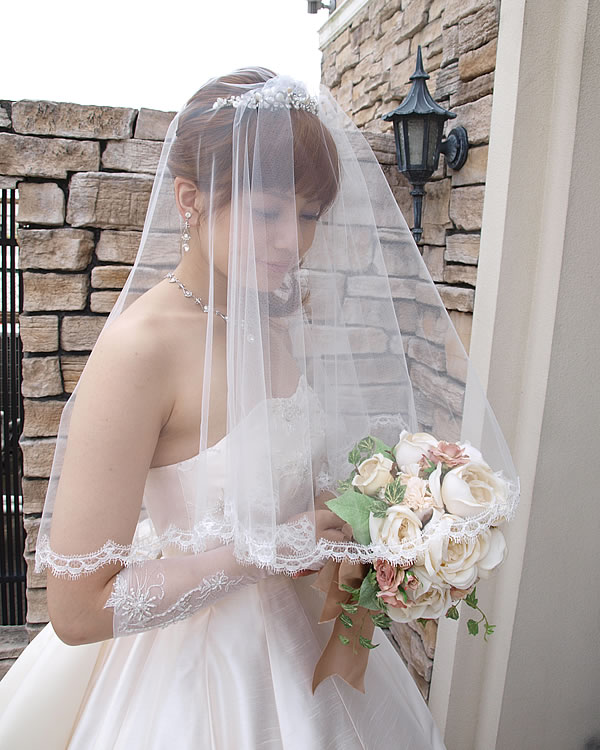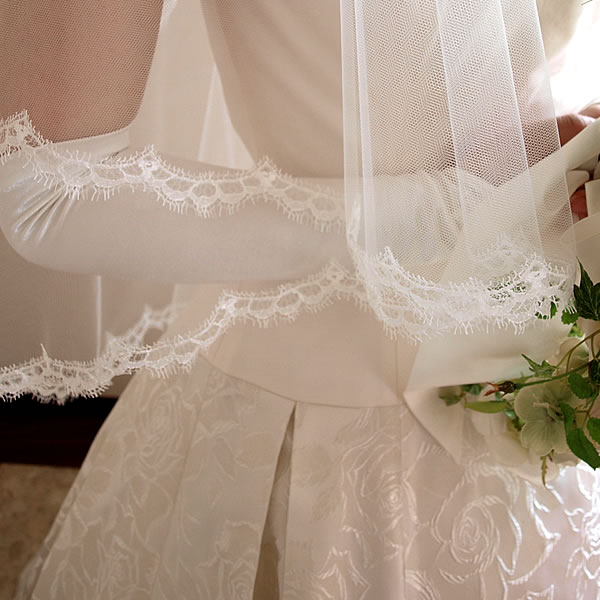 国内の織元で織られた繊細なリバーレースをほどこしたショートベール。