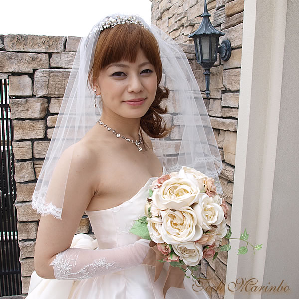 国内の織元で織られた繊細なリバーレースをほどこしたショートベール。