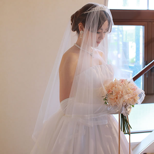 透明なオーガンジーのベールラインがドレス姿を綺麗に魅せます。