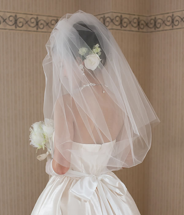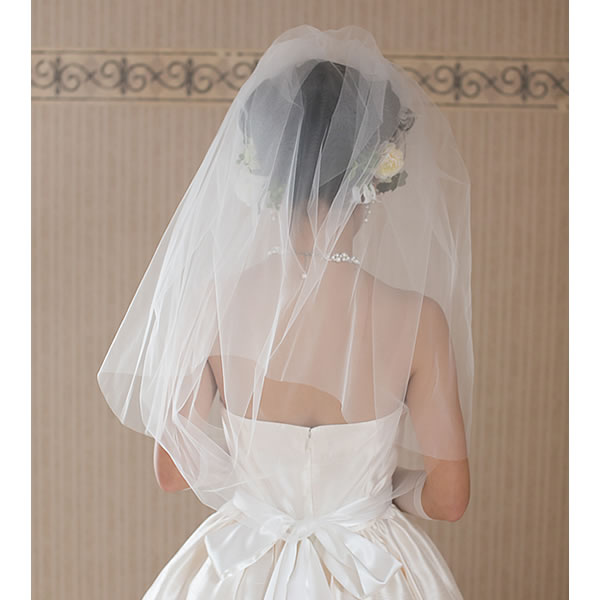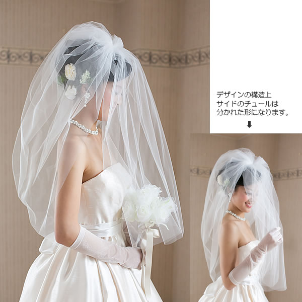 ふんわりとギャザーのたっぷり入ったチュールは綿帽子のように華やかで小顔効果もあります。