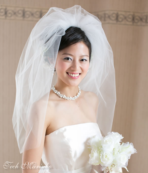 ふんわりとギャザーのたっぷり入ったチュールは綿帽子のように華やかで小顔効果もあります。