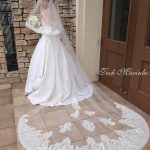 刺繍のステッチで華やかさを加えた存在感のあるロングベール。