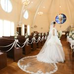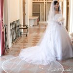 凛としたベールはゴージャスなドレスをすっきりとした印象に。