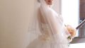 幸せオーラに包まれる愛らしいローズ柄のフェイスベール。