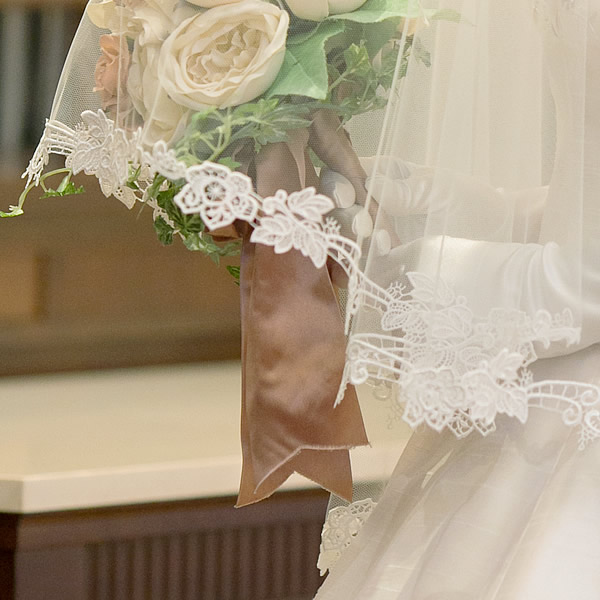 繊細ながらも存在感のあるレースはドレス姿に華やぎを添えます。