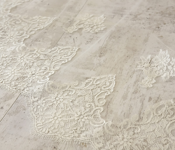 ソフトチュール(日本製の上質で柔らかな手触りです。) リバーレース(20cm~5cm幅波形 フランス製の最高級レースです。) コームは付いています。