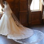 適度なレース巾がありますので比較的どんなドレスにも合わせやすいウェディングベールです。
