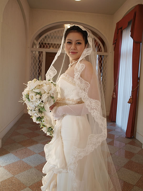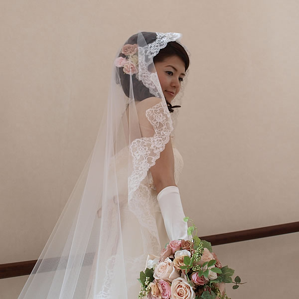美しいお花の柄のレースをベールの周囲にほどこしました。