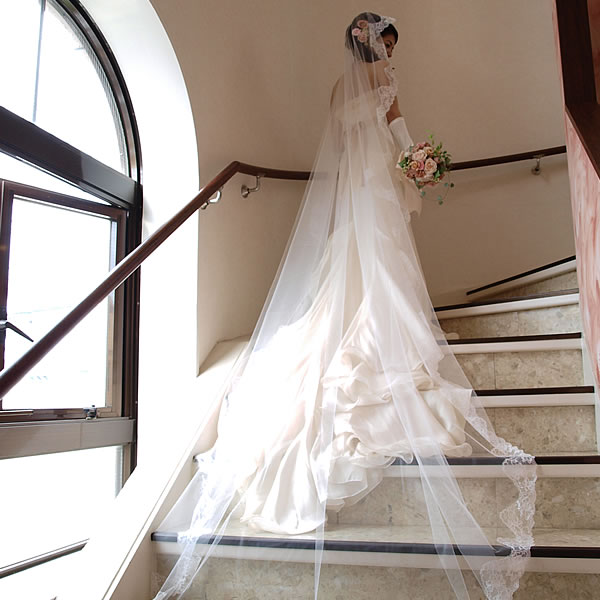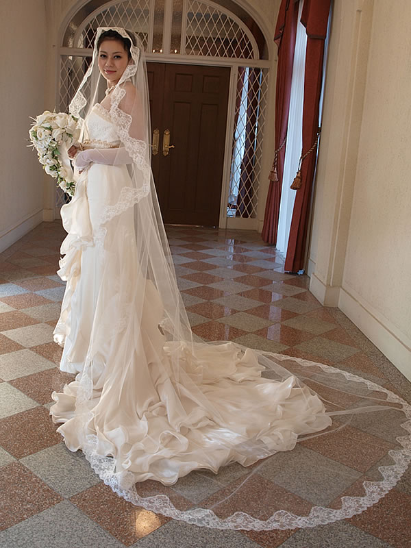 透明感があり、波のような動きが華やかでフェミニンなロングマリアベールです。