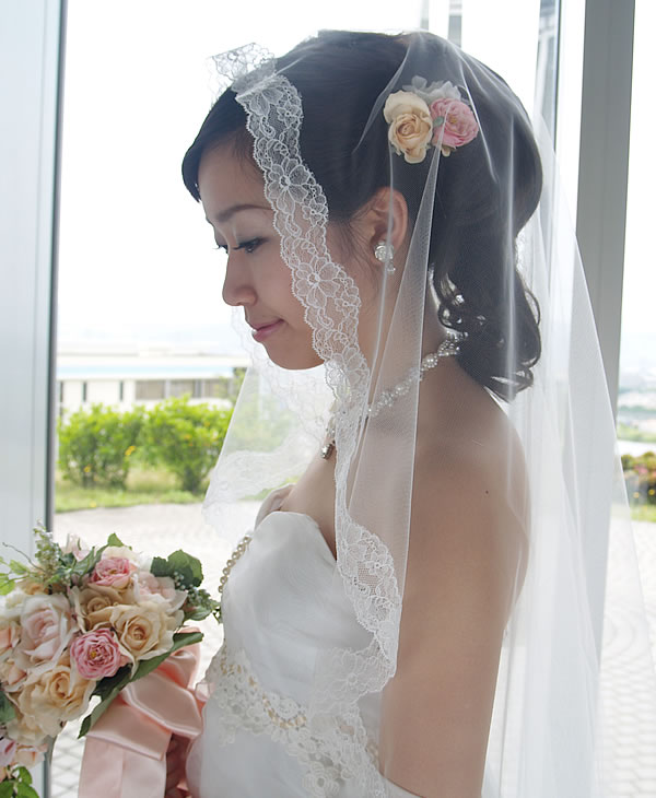 繊細で上品なレースをベール周囲にほどこしました。